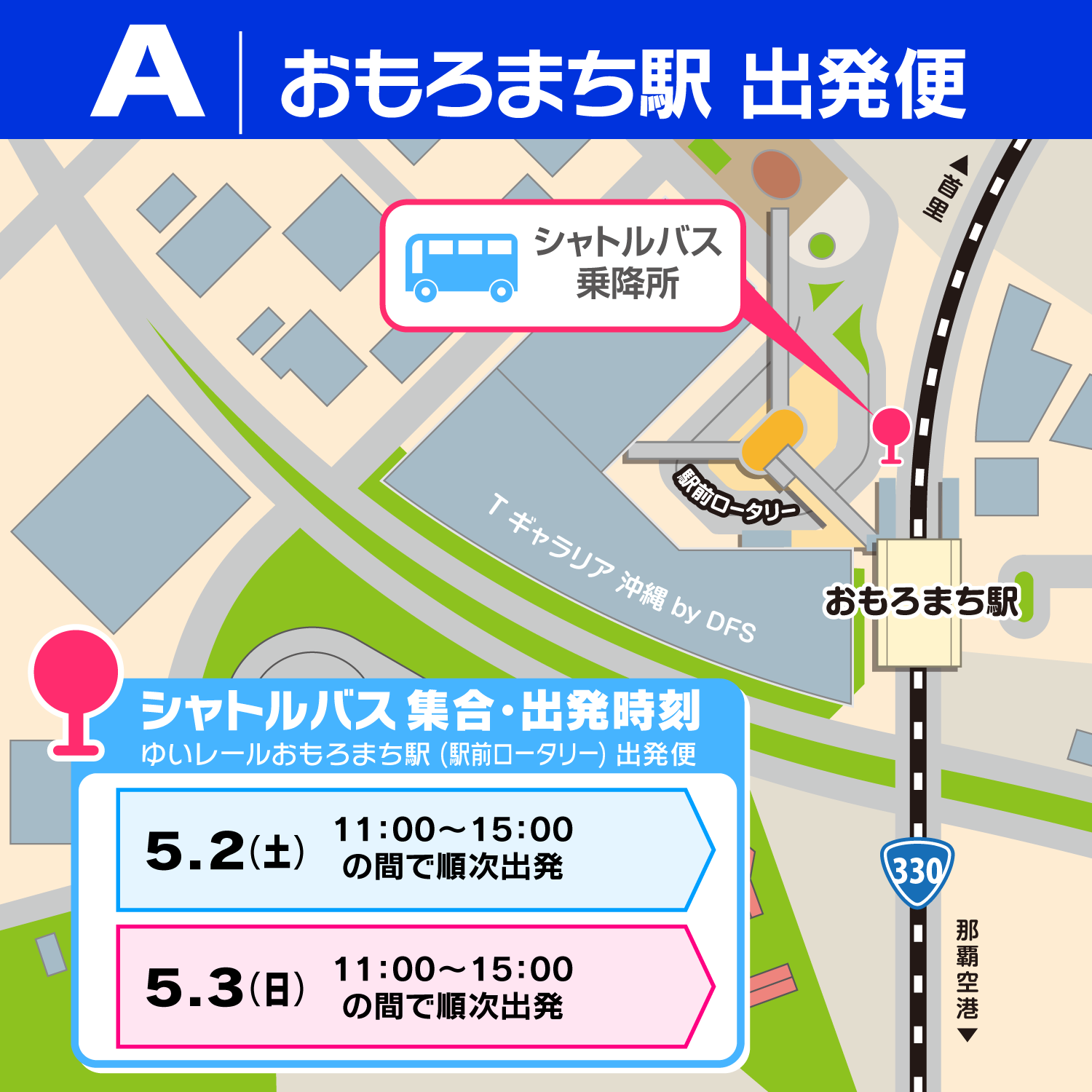 ※B復路はゆいレールおもろまち駅(駅前ロータリー)までとなります。ご注意ください。